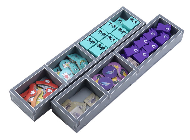 Root insert fra Folded Space er designet til å ha plass til både hovedspillet og utvidelsene The Riverfolk, The Underworld, The Exiles & Partisans Deck, The Vagabond Pack og Resin Clearing Markers. Med denne inserten får du forbedret spillbarhet og effektiv lagring av alle komponenter. Mange av boksene kan brukes under spilling og senker tidsbruken både under oppsett og nedpakking betraktelig. Regler og brett fungerer som lokk på toppen av inserten, så ingen komponenter vil rotes til i nedpakket tilstand.