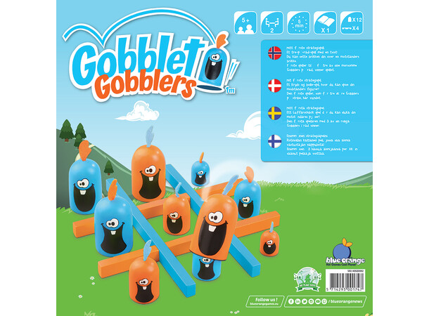 Gobblet Gobblers är barnens första strategispel - ett tre-i-rad-spel med en twist; du kan lägga din pjäs över en motståndares pjäs! Den spelare som först får tre av sina roliga Gobblers i rad vinner spelet.