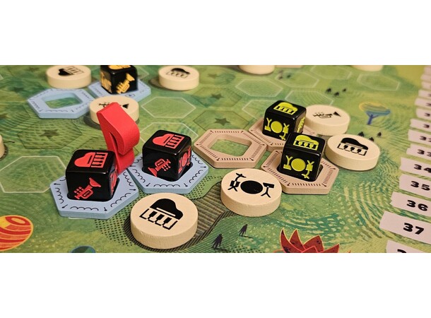 - Spela med två lager: Placera ut platsbrickor och tilldela fan-tärningar i en blandning av områdeskontroll och taktisk positionering.