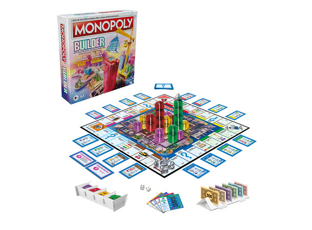 I Monopopoly Builder ger fastigheterna du köper dig också resurser som samlas in baserat på tärningskast och olika platser i brädspelet. Dessa resurser kan sedan användas för att bygga byggnader som så småningom kan bli torn med en takvåning. Spelarna tjänar poäng med dessa byggnader och även om du fortfarande kan gå i konkurs är vinnaren den spelare som tjänar flest poäng. Reglerna har inslag av Settlers of Catan, men Monopoly-klassiker som fängelse, gratis parkering och Chance-kort är fortfarande en viktig del av detta spel.