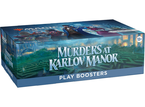Magic the Gathering: Murder at Karlov Manor Play Display innehåller 36 boosterpackningar. Varje booster innehåller 14 kort, totalt 504 kort per display.